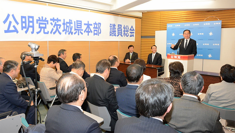 挨拶に立った山口那津男代表は、「本年は、本格的な経済成長と地方創生を目指していきたい。また、外交の年でもあり、G7会合の成功、日中韓の友好交流にも拍車を掛けたい。自公政権の安定にこれまで以上に努力して行きたい。JR常陸多賀駅で県議会報告(県北芸術祭2016について)