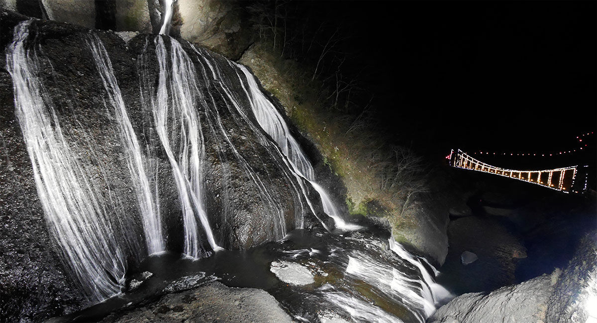 袋田の滝のライトアップを視察