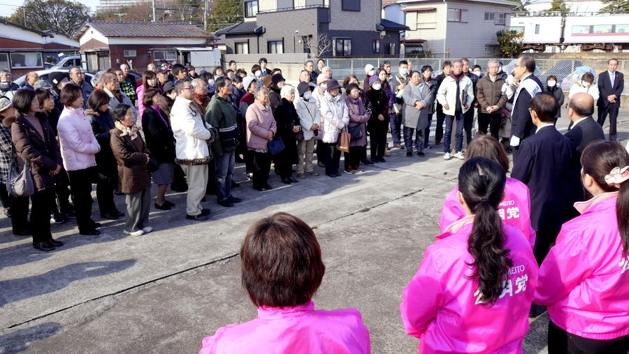 1月19日、東海村議選が告示されました。公明党から、岡さとる候補、植木しんじ候補の2人が必勝を期して立候補しました。東海第2原発の再稼働問題で地元住民との意見交換(東海村内)