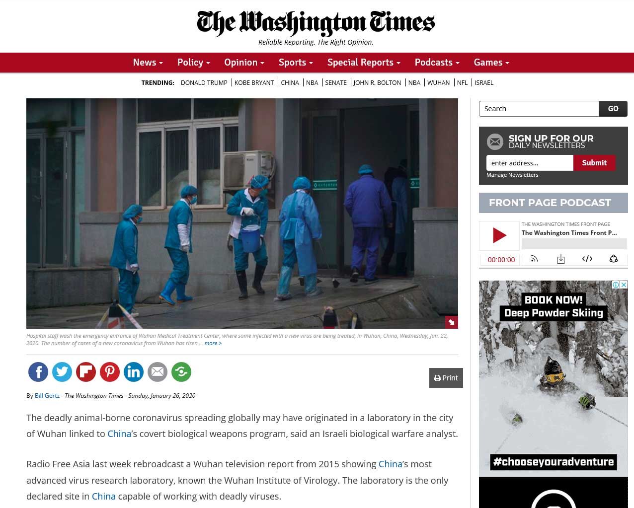 この情報元は、米国「ワシントン・タイムズ」紙。社名に注目していただきたい、有名なワシントン・ポスト紙でもニューヨーク・タイムズ紙でもありません。「ワシントン・タイムズ」は、文鮮明の統一教会=国際勝共連合が創刊した新聞です。反共・反中国のプロパガンダが目的の新聞です。