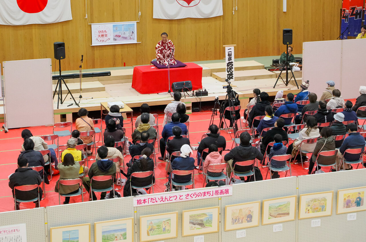 ライブステージでは、二松亭ちゃん平さんの創作落語『笑顔の大煙突』、ETCひたちの紙芝居劇「大煙突とさくらのまち」、若手のアーティストの演奏などが上演されました。