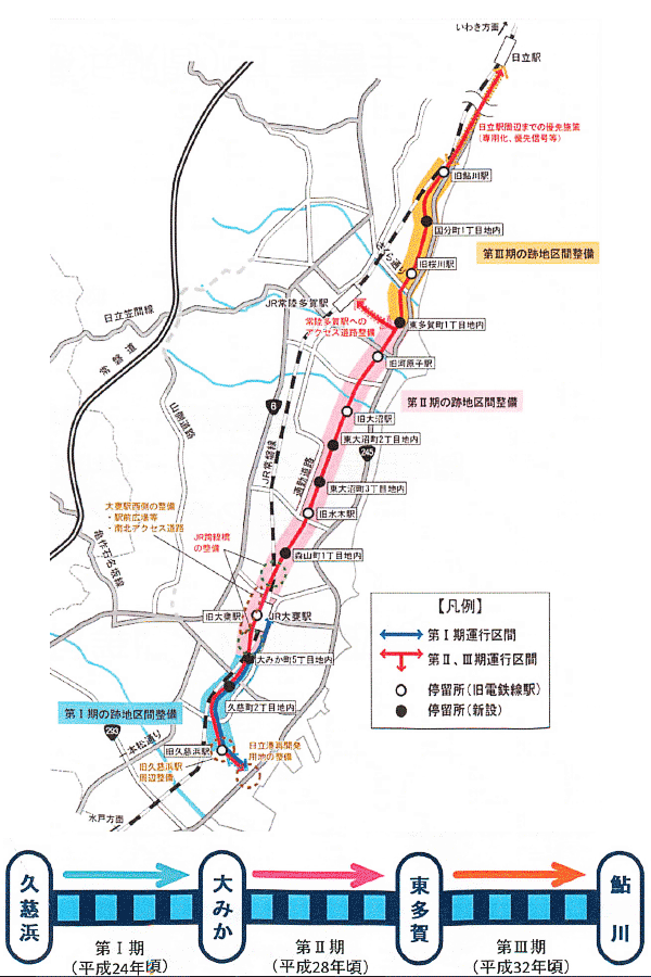 ひたとBRTは2020年度を目標にJR日立駅まで、バス専用道約8.5キロを含む約13キロで建設が計画されています。