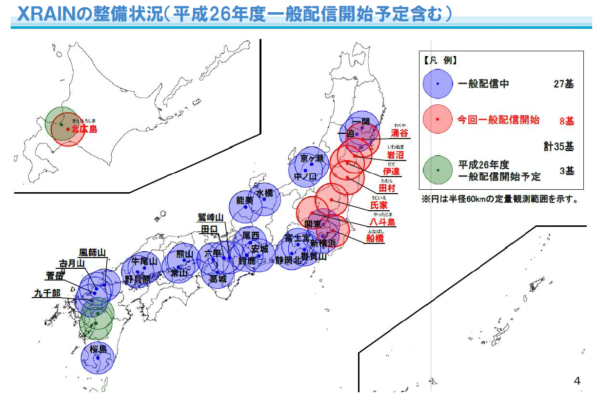 国交省では、ゲリラ豪雨などの観測のために、全国にXバンドMPレーダーの観測網を整備する計画です。このシステムをXRAINと呼んでいます。