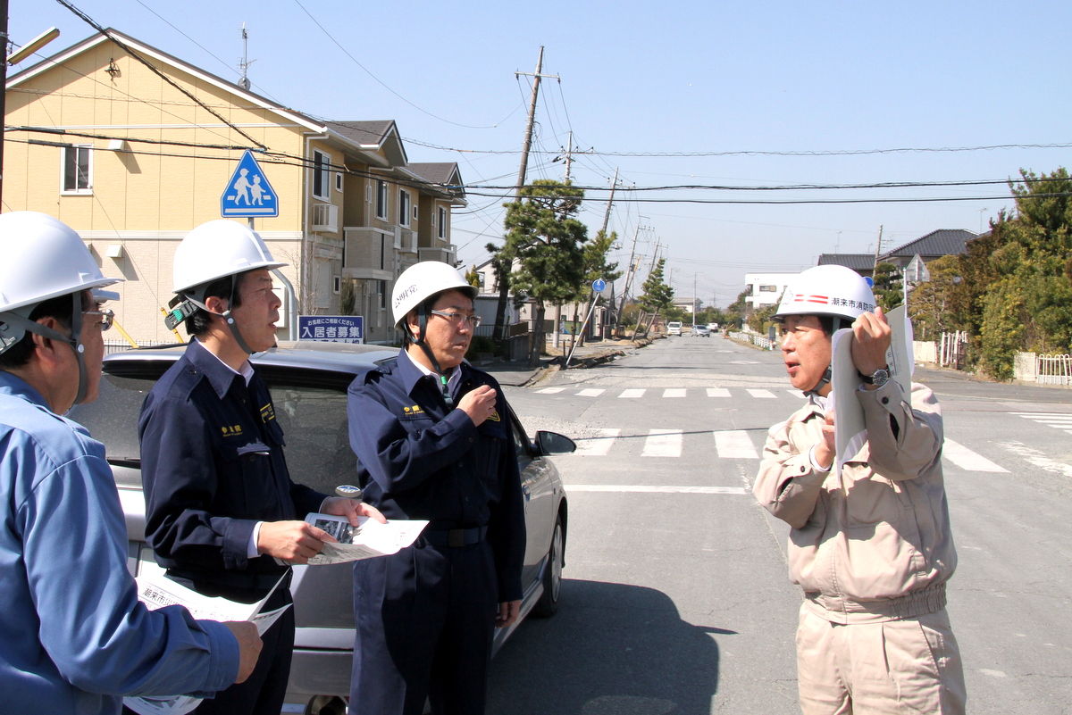 2011年3月11日に発生した東日本大震災によって、潮来市では震度6弱の揺れが生じ、日の出地区では広範囲にわたって地盤の液状化が発生しました。液状化によって、日の出地区の住宅約2100戸が傾くなどの被害を受けました。電気、ガス、上下水道等のライフラインも途絶したため、避難所が開設された当初、日の出地区の日の出小学校には1022人もの住民が押し寄せました。