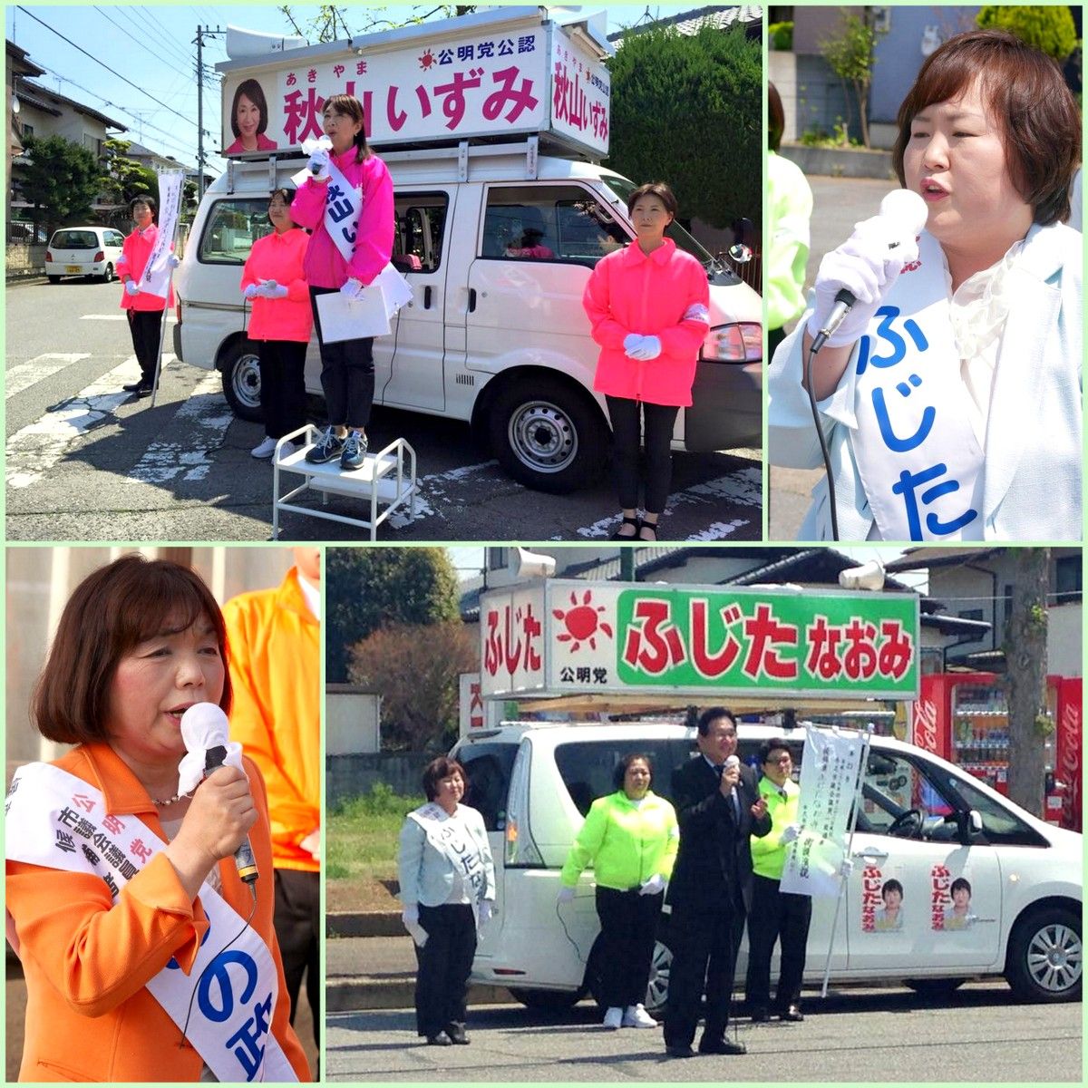 秋山いずみ候補、藤田なおみ候補、おの政子候補、いずれも素晴らしい女性議員候補です。