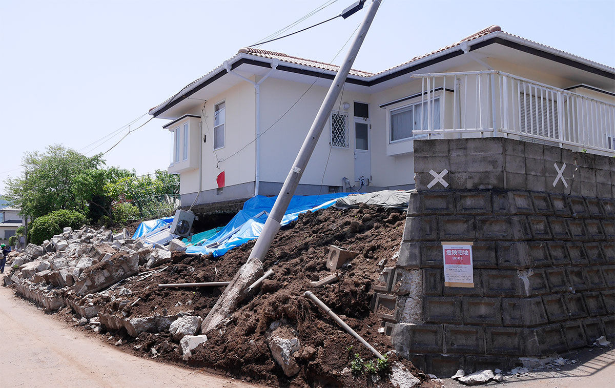 今回の地震では、住宅の地盤被害が多く見られます。そこで地盤の沈下や斜面の崩壊等の地盤被害に伴い、住宅の不同沈下や地盤面下への潜み込みが発生した場合にも、地方自治体の判断で、「大規模半壊」や「全壊」として判定できるとしています。