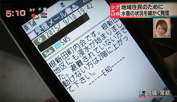 この”ほっとメール”が、関東・東北豪雨災害では、各避難所や親類宅、自宅で待機している町民と区長を結ぶ情報共有の手段として大活躍しました。住民の早期避難のキッカケとなりました。