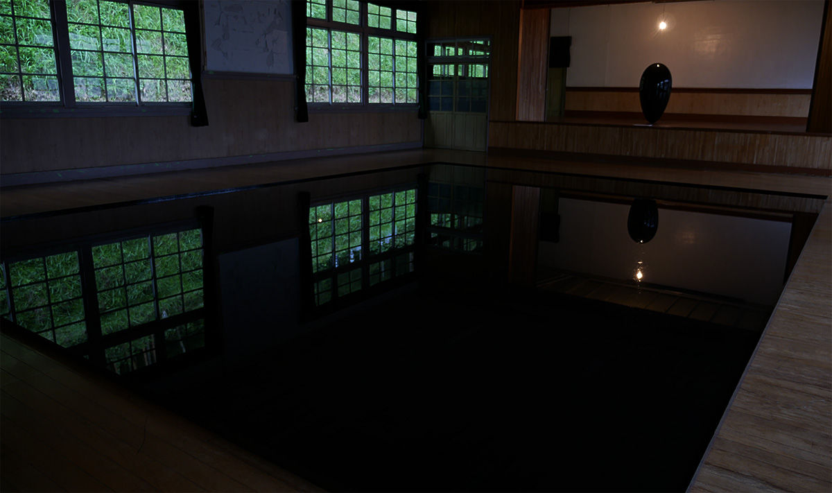 昭和の子どもたちの声が聞こえてくるような環境の中で、地球の環境を汚すモノであるコールタールを使った作品を展示することにより、美しい自然と芸術との対比を考えて欲しいのです。今回の出展作品は、半世紀以上も前に「世界で一番薄い彫刻を作りたい」と思って作ったモノです。「点と線と面」で出来ている造形物を見ながら、大子町の自然にも目を向けてください。「ただある」ということに向き合ってください。