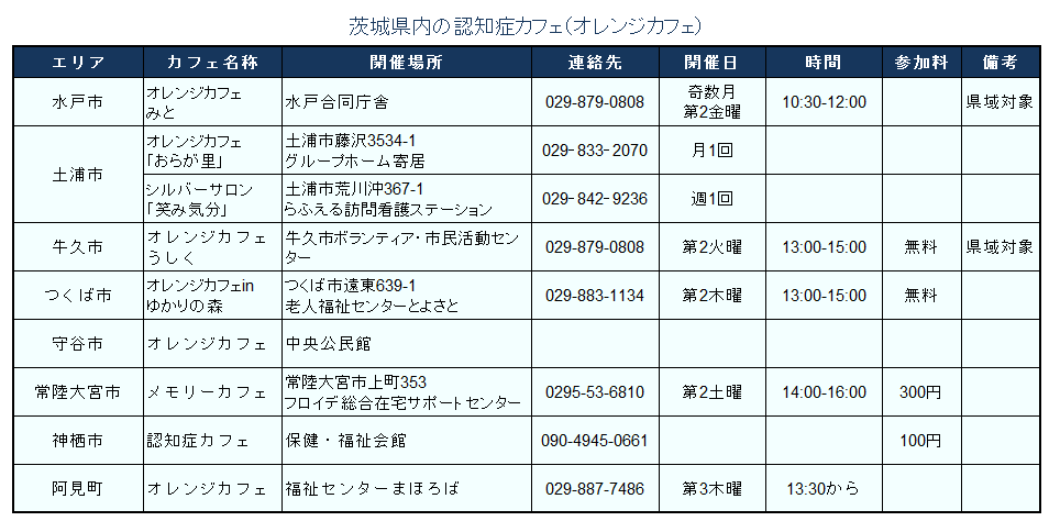 茨城県内では、9箇所のオレンジカフェが開催されています。
