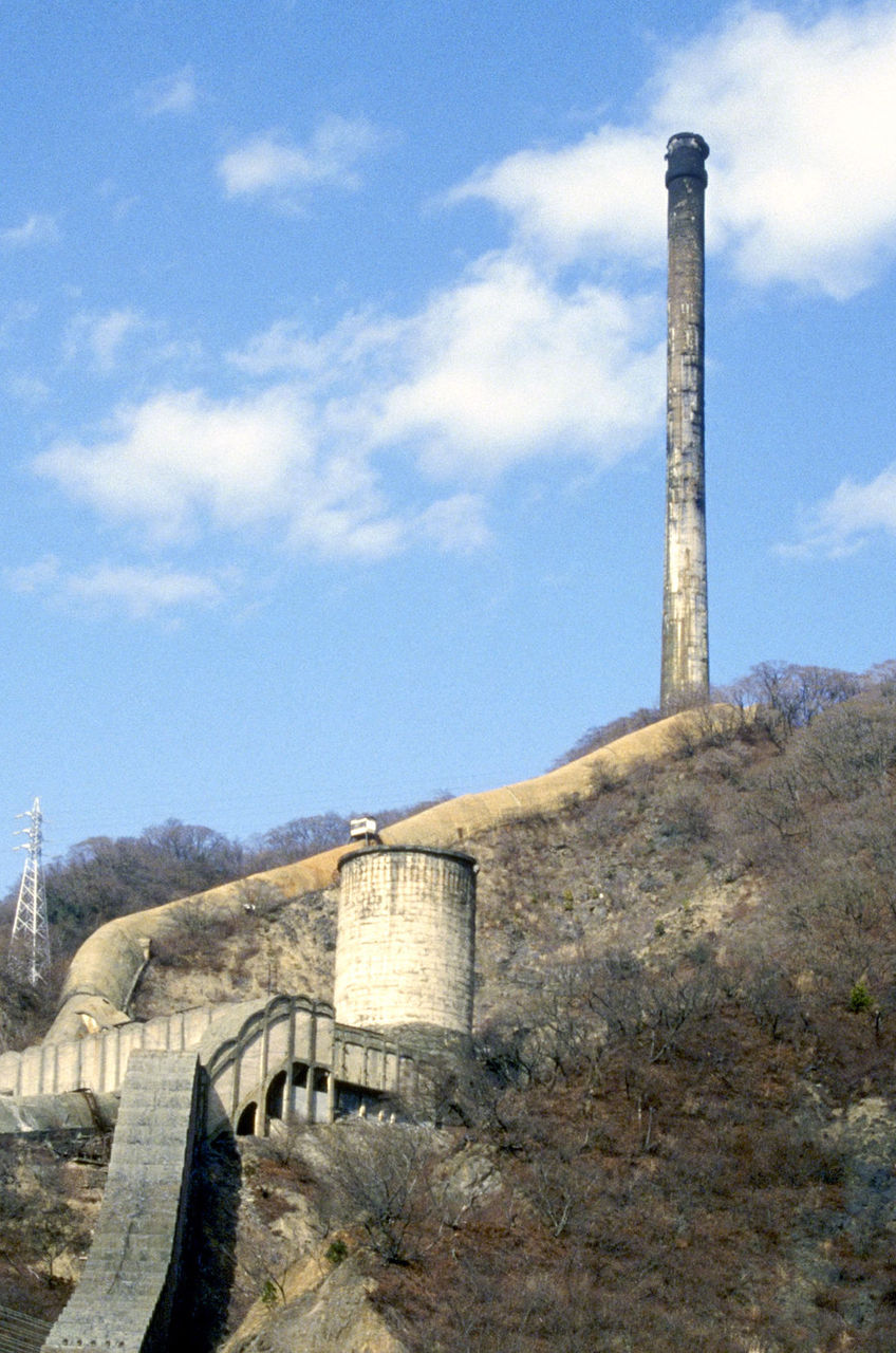 当時は煙はできるだけ薄くし、低い煙突から排出して、煙を狭い範囲にとどめることが、煙害を軽減する最良の方策であると信じられていました。しかし、久原房之助は「煙を高煙突方式により高空に拡散し煙害を軽減する」という方策を考案し、大正3年12月に高さ155.7m当時世界一の大煙突を完成させました。その後、煙害は激減し、問題の解決をみることになります。