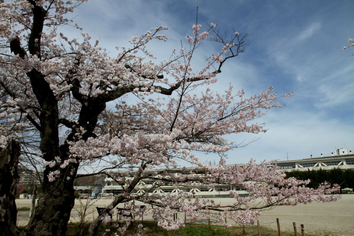 日立市の助川小学校の校庭には、明治・大正・昭和・平成と四代に渡って咲き続けている一本の桜の木があります。今年も見事な薄いピンク色の花を咲かせました。