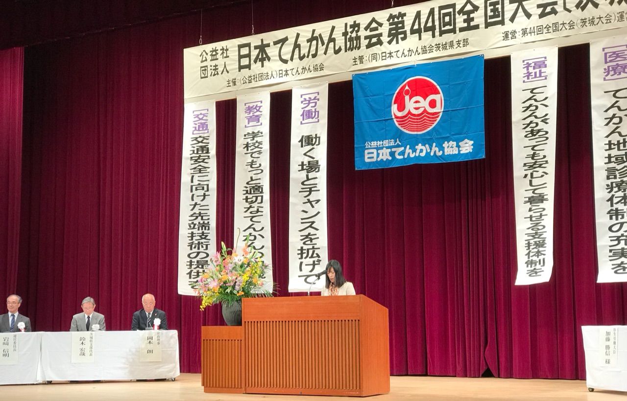 10月21日、井手よしひろ県議は日本てんかい協会第44回全国大会(茨城大会)に参加しました。水戸市のJR水戸駅前駿優教育会館で開催されたこの大会は、茨城では初めての全国大会の開催です。日本てんかん協会には、47都道府県全てに支部があり、日々さまざまな活動をおこなっています。
