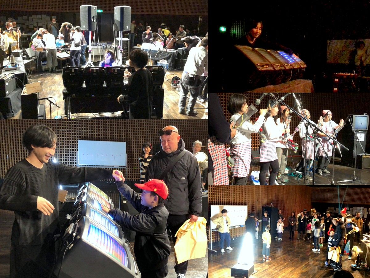 12月17日、茨城県北芸術祭のフォロアップ事業として、使わなくなった扇風機などを楽器として再生する古家電楽器プロジェクト「エレクトロニカ・ファンタスティコス」の体験会とミニライブが、日立シビックセンター多用途ホールで開かれました。