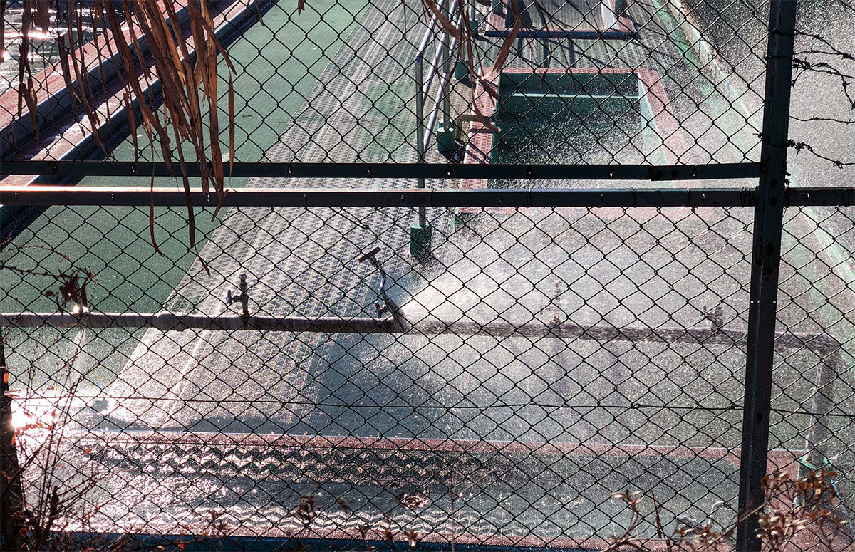 小学校校庭で水道管破裂