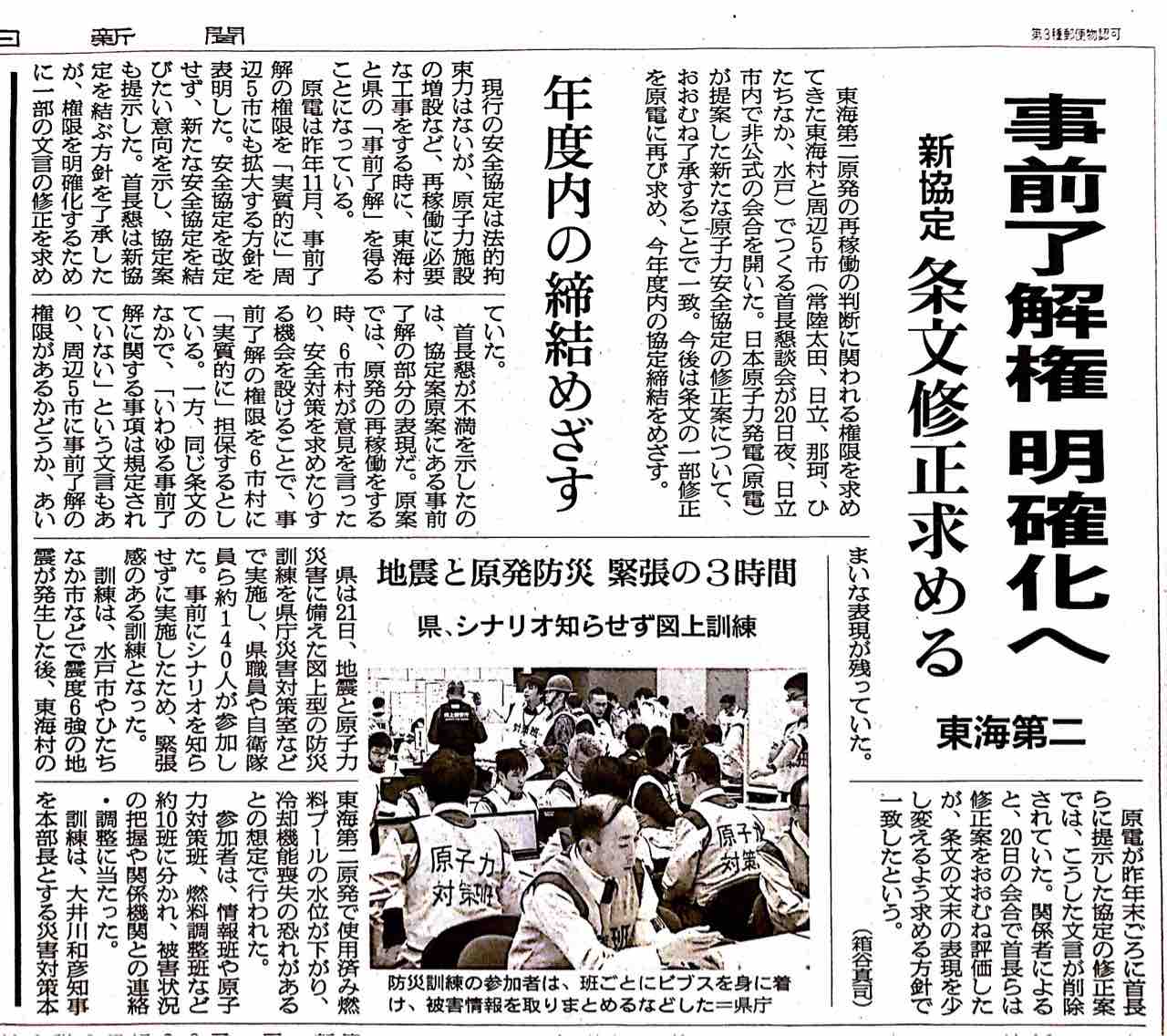 今週、東海第2原発を巡る気になる新聞記事が、2月21日の読売新聞社会面と22日の朝日新聞地方版に掲載されました。
