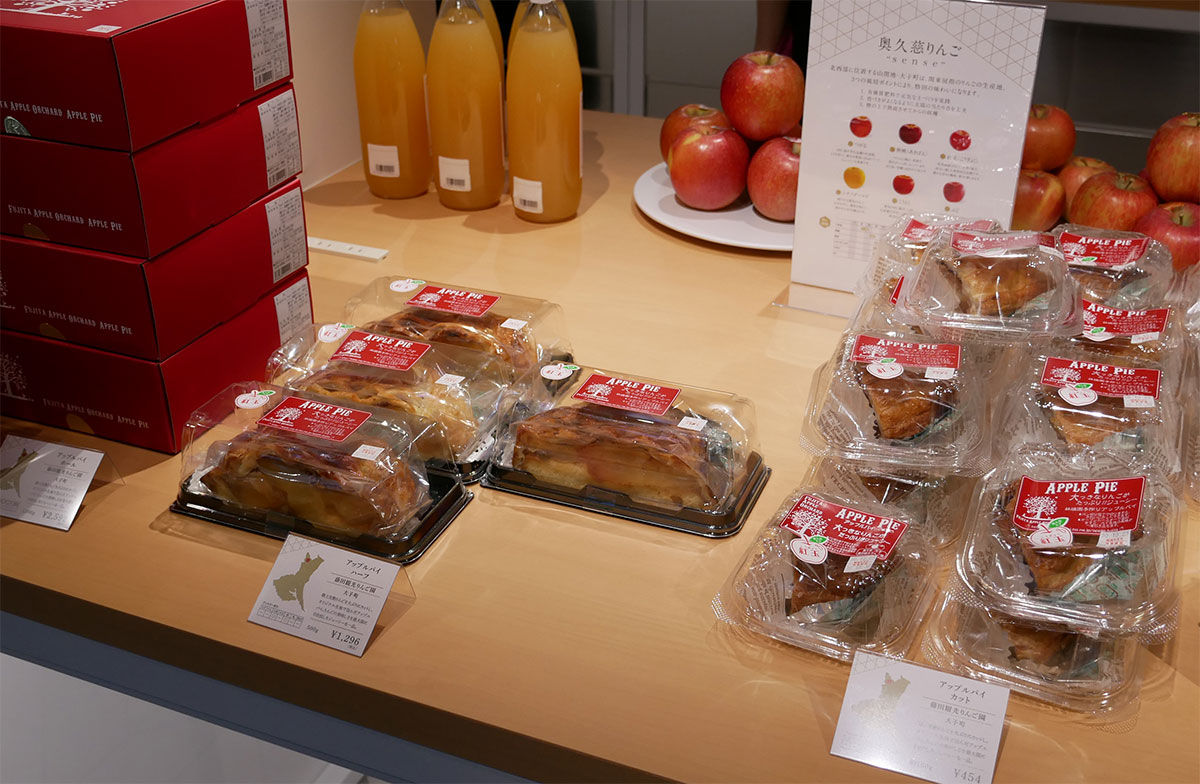 物販は食品や地酒、工芸品など約500点を厳選。従来の店舗から品揃えやデザインを一新し、通路を広くし、統一デザインのテーブルで四季折々の商品を提案しています。