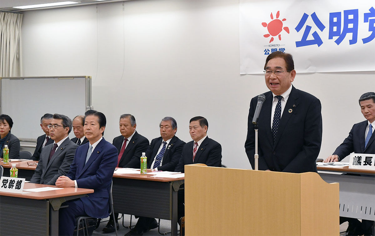 大会には山口那津男党代表が駆け付け、新執行部の船出に期待を寄せ挨拶しました。