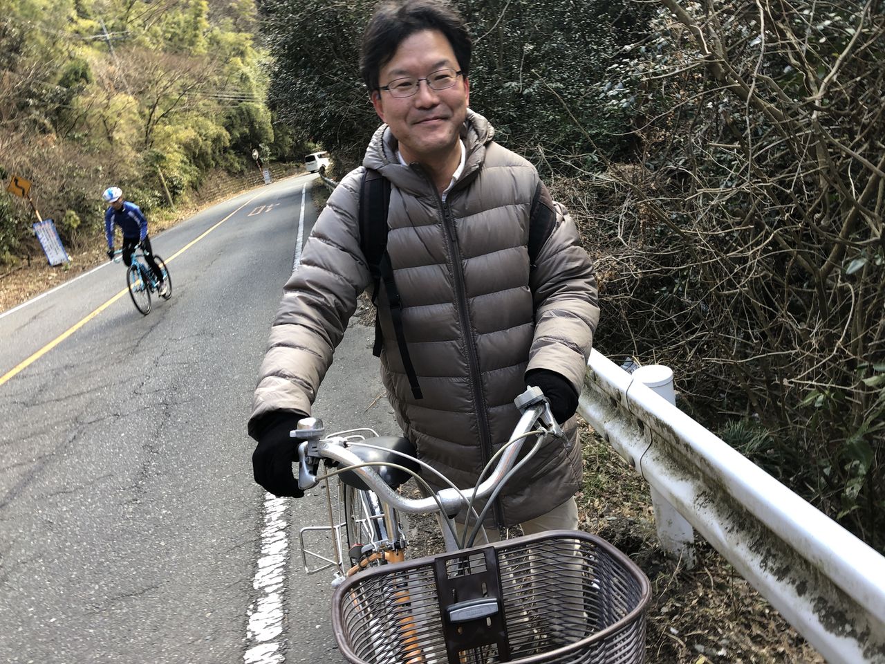 バッテリーが切れたアシスト自転車は、普通の自転車より厄介です。これ以上の山登りは無理と、ここでリタイア。ギブアップしました。(帰りはほとんどが下り坂ですので、村本さんは無事スタート地点には戻れました)