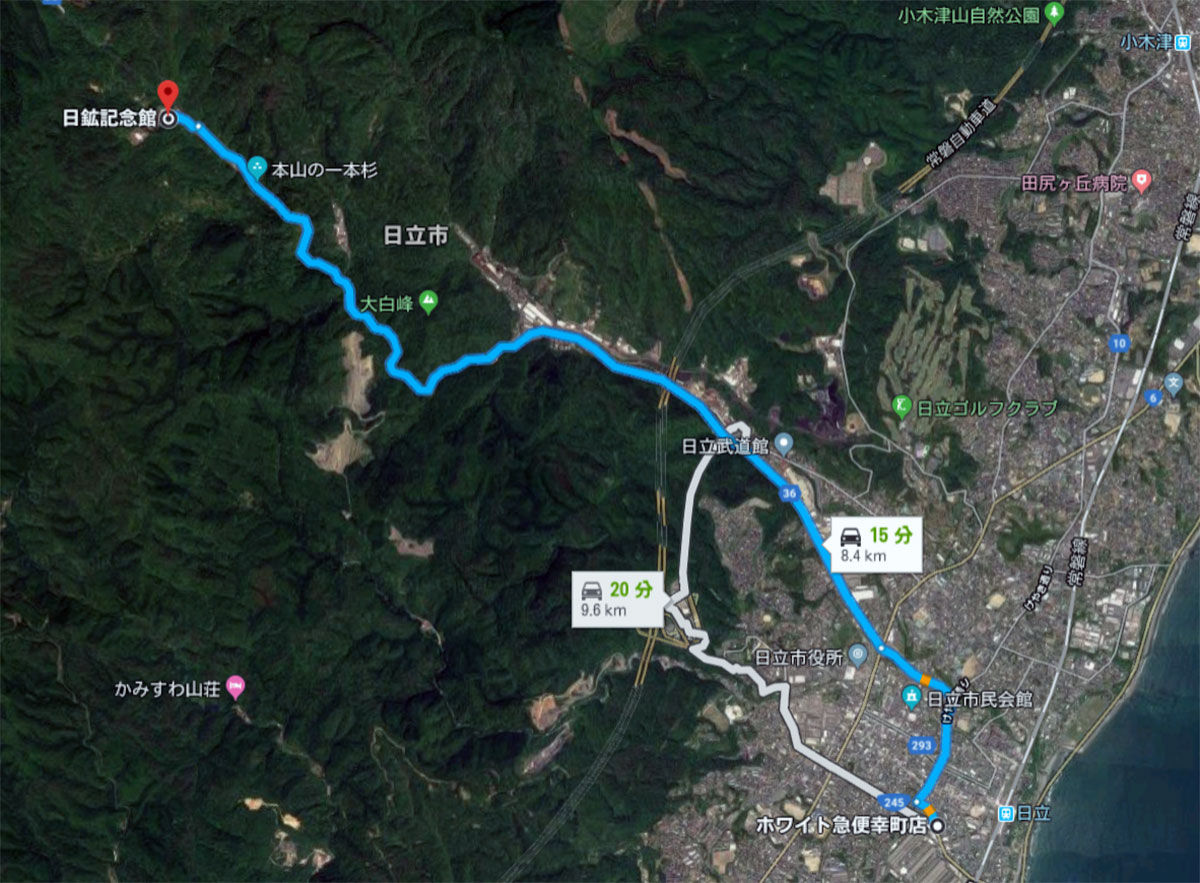 途中には、日立製作所発祥の地「山手工場」、旧共楽館、そして日立の大煙突などが観られます。常磐道の橋脚の高さにも圧倒されます。