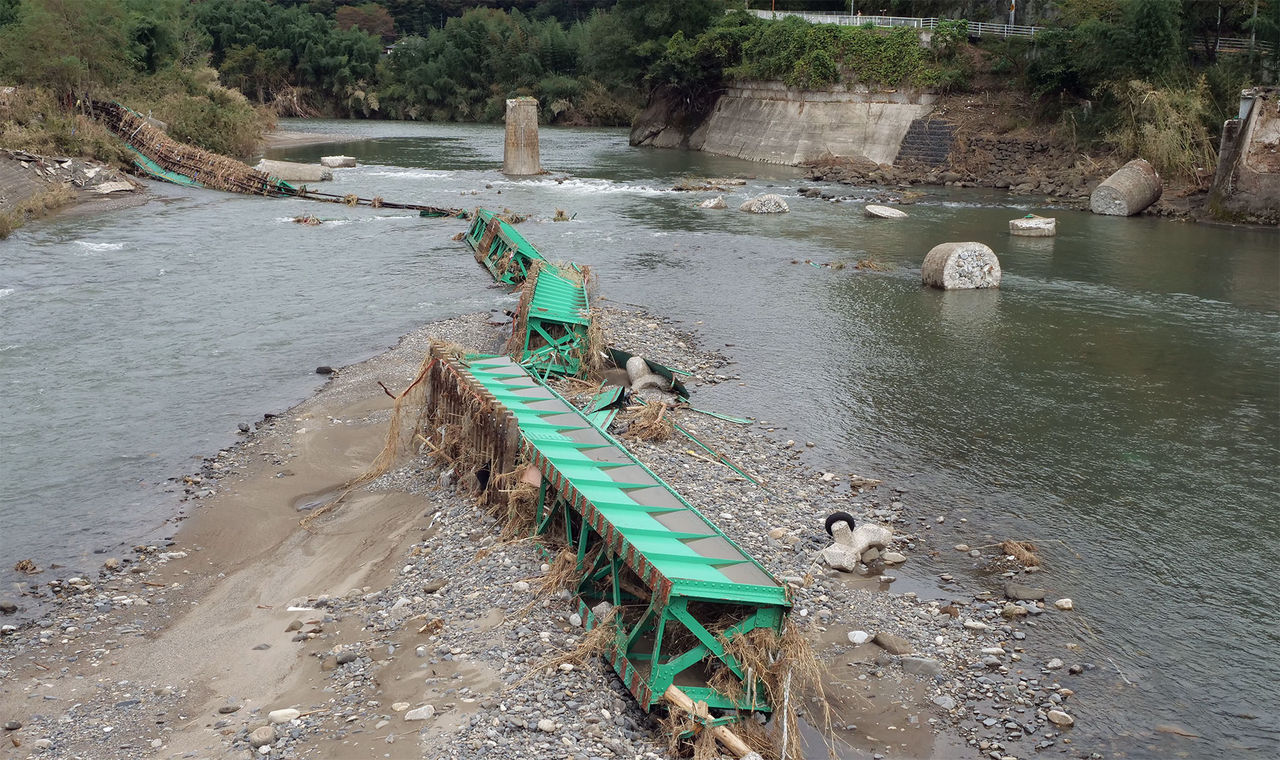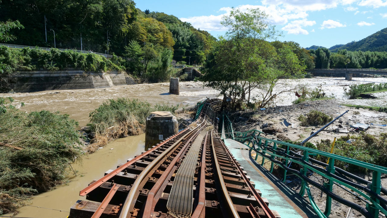 台風19号の影響で水戸と福島県の郡山を結ぶ水郡線は橋が流されたり、付近の盛り土が流出したりする大きな被害が出て、常陸大宮駅から郡山駅までの運行ができない状態が続いています。被害が大きかった大子町の西金駅から常陸大子駅までの3駅の間は復旧にはかなりの時間がかかる見込みで運転再開の見通しは立っていません。久慈川の増水で被害を受けた第6久慈川橋梁(水郡線袋田駅〜常陸大子駅間/大子町久野瀬)は、全長約137.8メートル、幅約3.8メートル。7連の鉄製橋桁が全て落下し、コンクリート製の橋脚6基のうち3基が流失、1基が転倒しました。