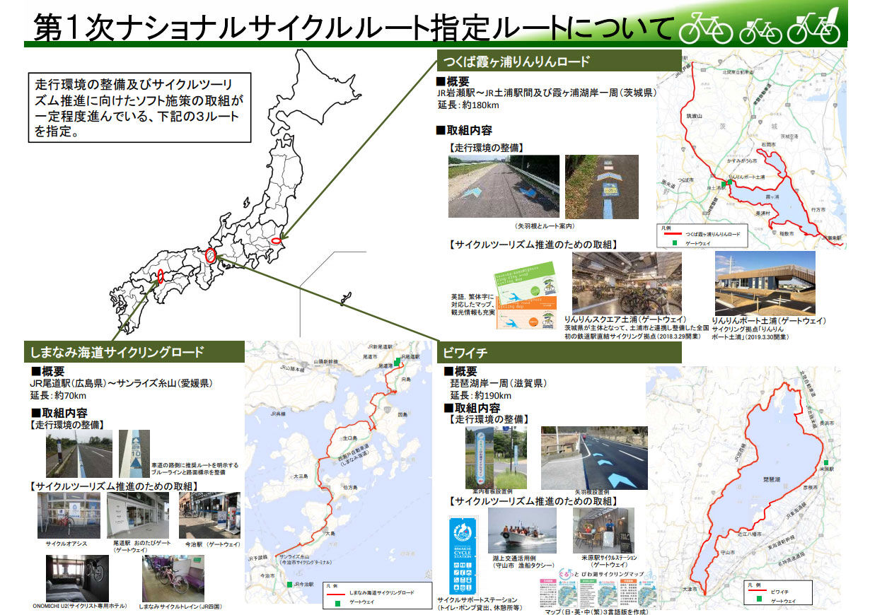 ¡¡£·ÆüÆüËܽé¤Î¥Ê¥·¥ç¥Ê¥ë¥µ¥¤¥¯¥ë¥ë¡¼¥È¤Ë»ØÄꤵ¤ì¤¿¤Î¤Ï¡¢¡¤Ä¤¯¤Ð²â¥ö±º¤ê¤ó¤ê¤ó¥í¡¼¥É¡Ê°ñ¾ë¸©¡Ë¡¢¢¥Ó¥ï¥¤¥Á¡ÊÈüÇʸмþÍ·¤Î¼«Å¾¼Öƻϩ¡¦¼¢²ì¸©¡Ë¡¢£¤·¤Þ¤Ê¤ß³¤Æ»¥µ¥¤¥¯¥ê¥ó¥°¥í¡¼¥É¡ÊËܻͲͶ¶¤Ç·Ò¤¬¤ì¤¿¼«Å¾¼Öƻϩ¡¦¹Å縩¡¢°¦É²¸©¡Ë¤Î£³¥ë¡¼¥È¤Ç¤¹¡£