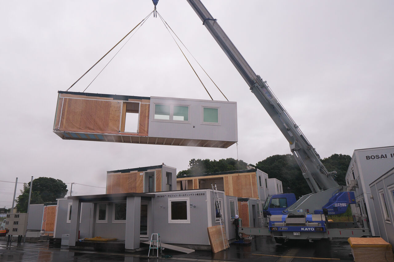 工場がある北海道から積み出されたムービングハウスと合わせ、球磨村の運動公園に仮設住宅として33棟、集会所1棟が建設されることになります。8月上旬には、被災した方が入居できるようになります。