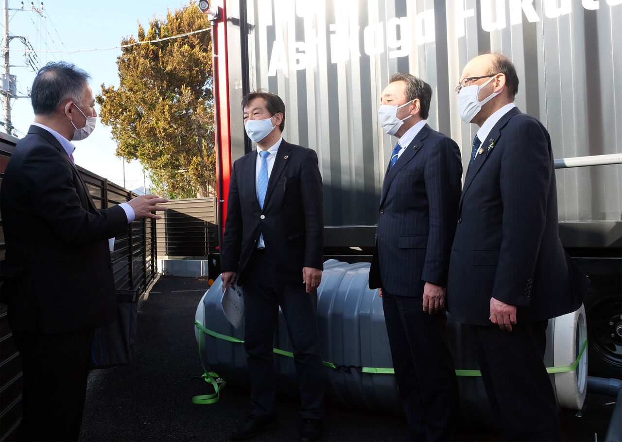 3月10日、公明党の輿水恵一埼玉県本部副代表、福重隆浩群馬県議会議員、山口恒夫栃木県議会議員に同行して、災害などの有事に被災地に駆けつける「レスキューホテル」の幅広い活用方法を展示する「足利福富ショールーム」を訪れ、コンテナホテルの災害時の活用について、現地を視察しました。