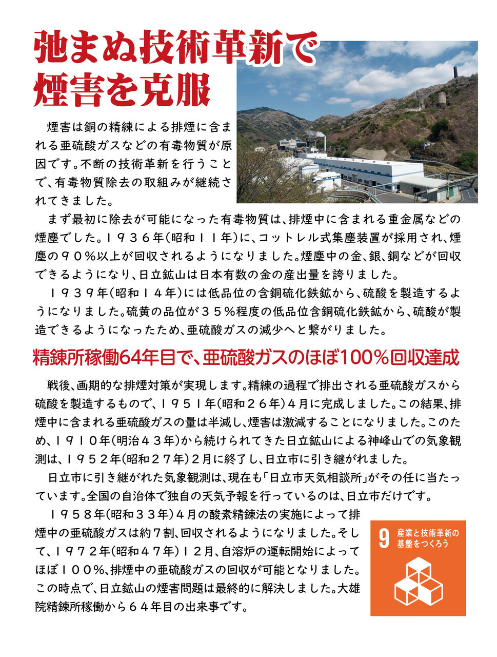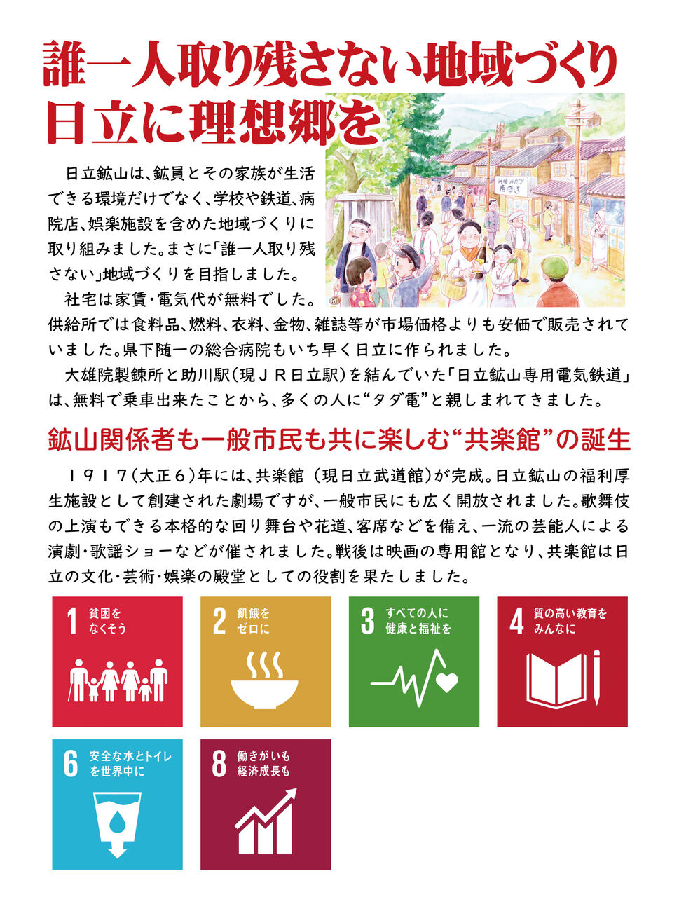 SDGsという概念がまだ存在しなかった時代に、日立はすでにSDGsの教科書とも呼べる偉業を成し遂げていたのです。大煙突とさくらのまち、日立の歴史は、私たちが誇りに思うべきSDGsの成功例と言えます。この地から、未来に向けて、持続可能な社会を創造し続けるという強い意志を世界に発信してまりましょう。