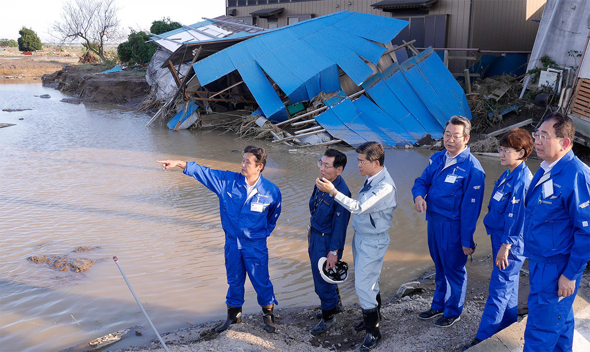 - 2015年9月の常総水害と鬼怒川流域治水事業の展開。10月に国交大臣に就任した石井議員は、常総水害の復興と鬼怒川の治水対策に全力を挙げました。鬼怒川流域の治水対策「鬼怒川緊急プロジェクト」には600億円超を投入し、2021年9月15日完成させました。このプロジェクトによって、流域治水という考え方が一般化し、マイタイムラインなどソフト面の治水対策も普及しました。