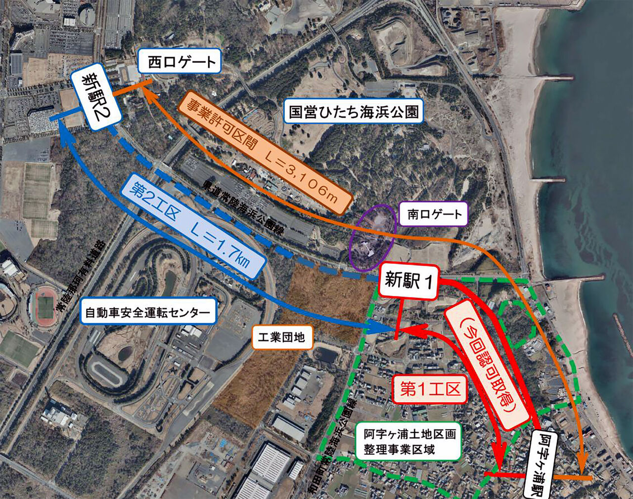 ・区間:阿字ヶ浦駅〜新駅1( 国営 ひたち海浜公園南口ゲート付近)